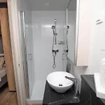 Wnętrza wyposażone są w sofę i biurko do pracy oraz telewizję satelitarną. W łazience znajduje się oddzielna toaleta i prysznic. W łazience znajdują się również ręczniki kąpielowe.
